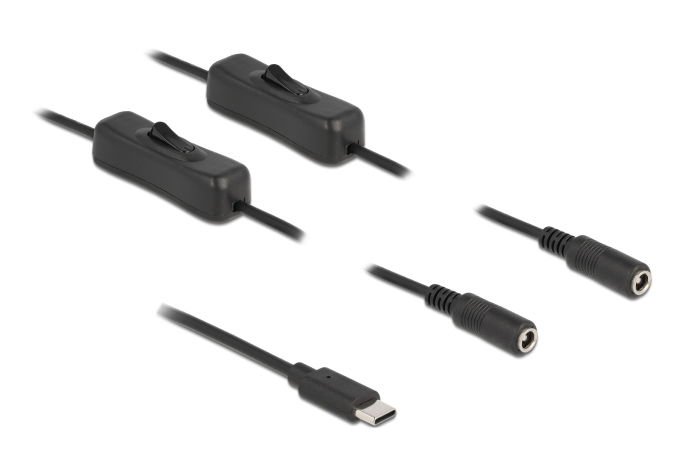 DELOCK καλώδιο USB Type-C σε 2x DC 5.5 x 2.1mm 86800, 1m, μαύρο