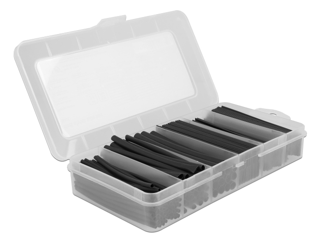 Το σετ αποτελείται από έξι διαφορετικές διαμέτρους με λόγο συρρίκνωσης στο ένα δεύτερο της αρχικής του διαμέτρου, με την χρήση πιστολιού θερμού αέρος. Διατίθεται σε πρακτικό κουτί αποθήκευσης ιδανικό για την ταξινόμηση και προστασία των μονωτικών το οποίο μπορεί να επαναχρησιμοποιηθεί για την αποθήκευση διαφόρων αξεσουάρ.