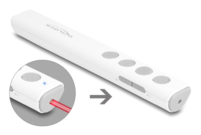 DELOCK τηλεχειριστήριο παρουσιάσεων 64251 με laser & πλήκτρα, 30m, λευκό