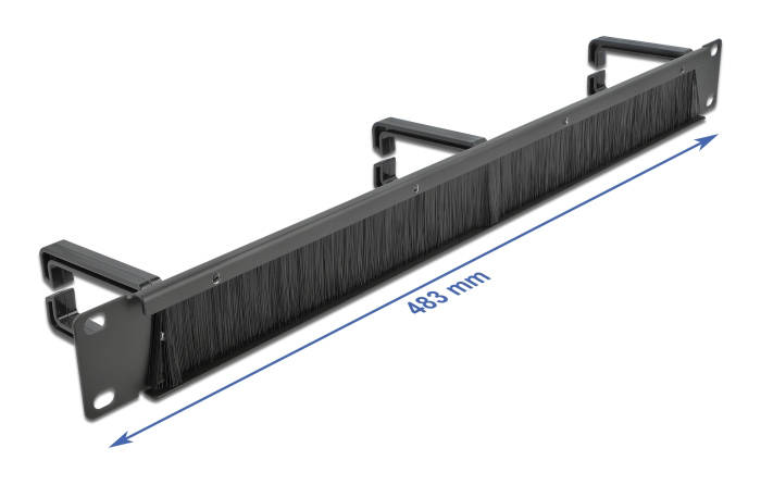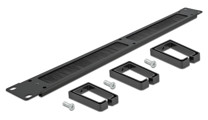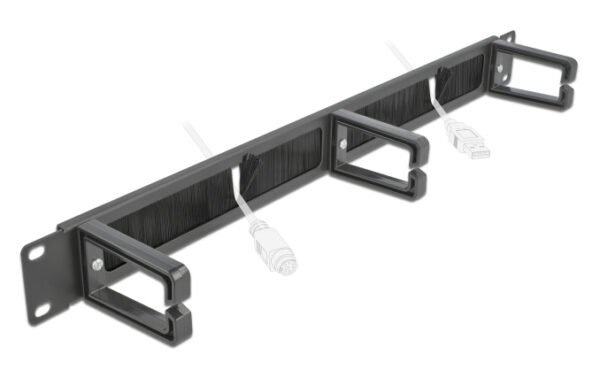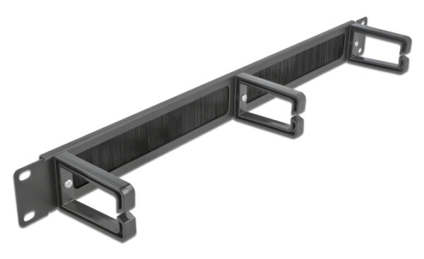 DELOCK cable management 66488, 19"/1U rack, 3x γάντζοι & βούρτσα, μαύρο