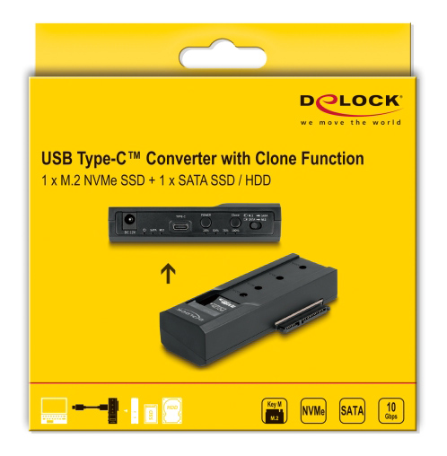 Υποστηρίζει λειτουργία κλωνοποίησης που επιτρέπει την αντιγραφή περιεχομένου από ένα HDD/SSD σε άλλο χωρίς τη χρήση υπολογιστή.