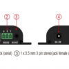 -Connectors: 1x RJ45 jack, 1x HDMI-A 19 pin female, 1x 3 pin terminal block (serial), 1x 3.5 mm 3 pin -stereo jack female (IR), 1x DC 5.5 x 2.1 mm female