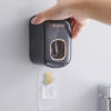 Τοποθετείται εύκολα στον τοίχο με αυτοκόλλητη βάση η οποία αποσπάται από τον διανεμητή. Με τον διανεμητή θα βάλετε εύκολα οδοντόκρεμα στην οδοντόβουρτσα σας, σπρώχνοντας την οδοντόβουρτσα στην ειδική εσοχή του διανεμητή.