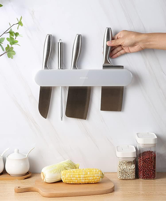 Κρεμάστρα της ECOCO, ιδανική για την κουζίνα. Εξοπλίζεται με 7 γάντζους για την αποθήκευση μικροαντικειμένων, διαφόρων σκευών, πετσετών κ.α, ενώ, στο πάνω μέρος της, διαθέτει βάσεις αποθήκευσης για μαχαίρια.
