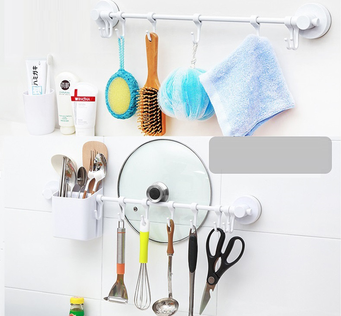 ECOCO κρεμάστρα τοίχου για κουζίνα-μπάνιο E1504, 8 x 5 x 53.5cm, λευκή
