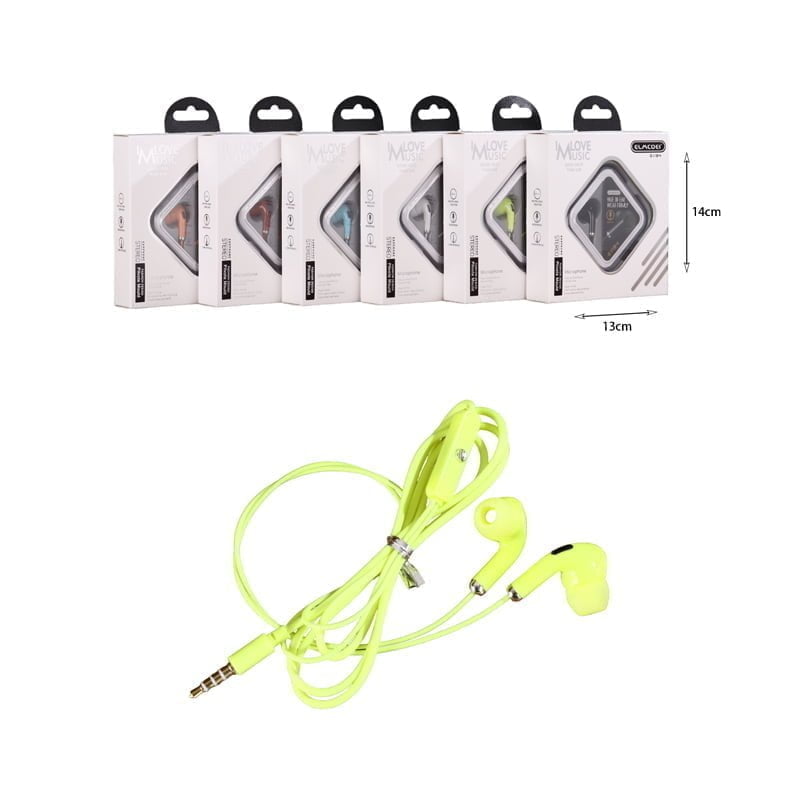 Ενσύρματα ακουστικά με μικρόφωνο σε 6 διαφορετικά χρώματα. Απολαύστε πλούσιο ήχο και πραγματοποιήστε τηλεφωνικές κλήσεις απευθείας από το smartphone σας με τα ενσύρματα ακουστικά με μικρόφωνο! Διαθέτουν πολύ καλή ποιότητα ήχου και ο σχεδιασμός τους εξασφαλίζει άνετη και άριστη εφαρμογή στα αυτιά σας. Με το πλήκτρο που διαθέτει, μπορείτε να διαχείριστείτε τις τηλεφωνικές κλήσεις σας με ιδιαίτερη ευκολία.