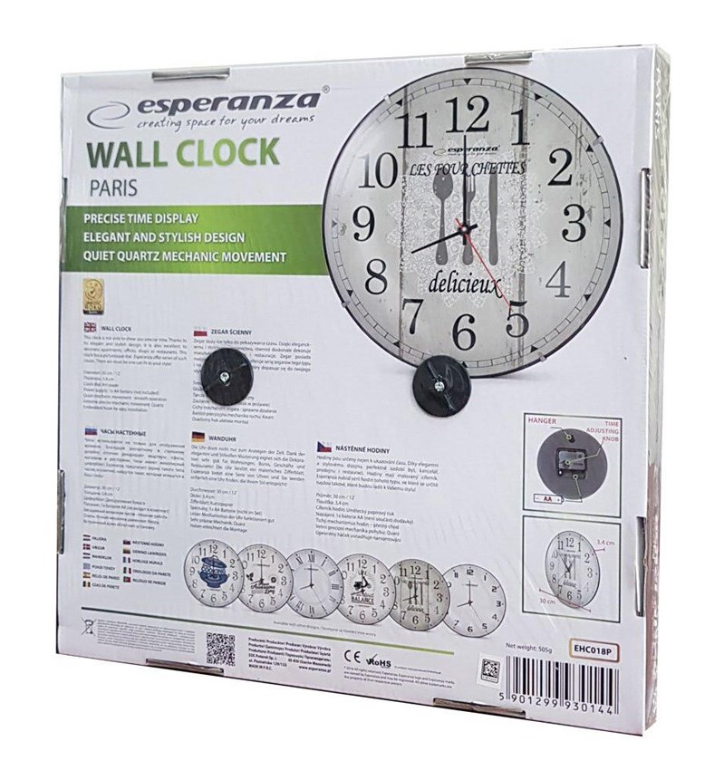 ESPERANZA Ρολόι τοίχου Paris EHC018P, 30cm