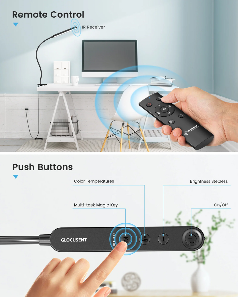 GLOCUSENT φωτιστικό γραφείου GLCSNTA1901 με κλιπ, τηλεχειριστήριο, έως 220lm, μαύρο