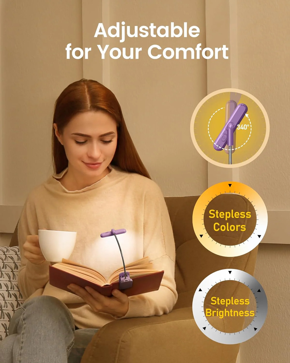 Ο εύκαμπτος βραχίονας σας επιτρέπει να ρυθμίζετε τη γωνία φωτισμού όπως επιθυμείτε, ενώ το πρακτικό κλιπ στερέωσης εξασφαλίζει σταθερό κράτημα στο βιβλίο.