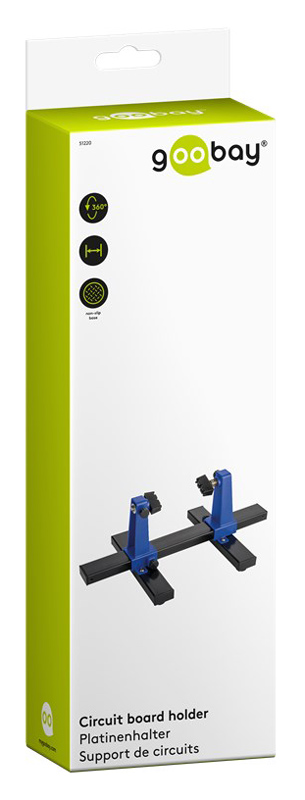 Βάση της Goobay για την στερέωση ηλεκτρονικών εξαρτημάτων όπως πλακέτες, κατάλληλη για εργασίες συγκόλλησης. Η βάση της διαθέτει αντιολισθητικά pads, ενώ, οι πλαστικοί βραχίονες συγκράτησης είναι περιστρεφόμενοι, προσφέροντας μεγαλύτερη σταθερότητα και ευελιξία κατά την εργασία.