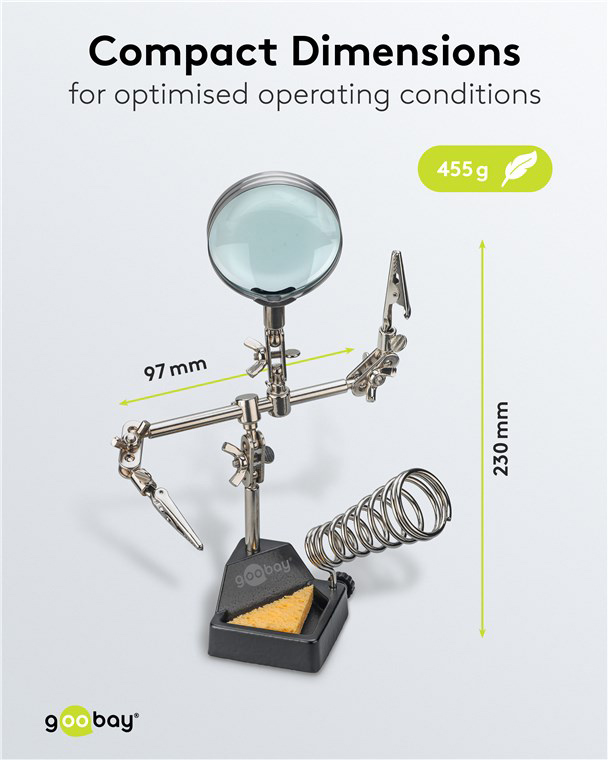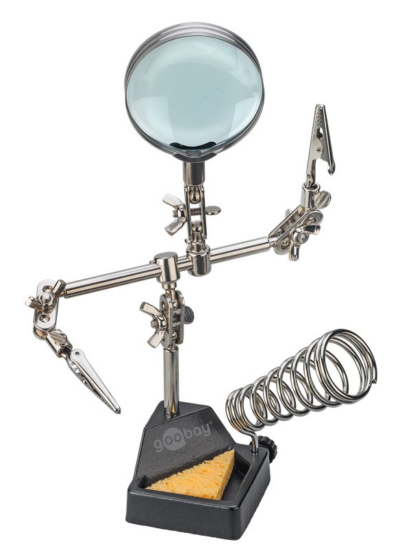 GOOBAY βάση στήριξης πλακέτας 76560 με μεγεθυντικό φακό & θέση για κολλητήρι, 2x βραχίονες, μαύρη