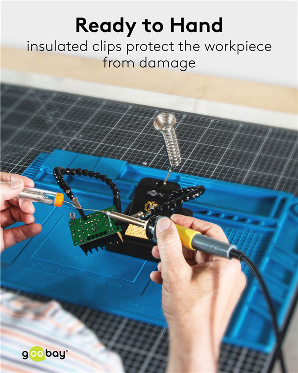 Βάση της Goobay για την στερέωση ηλεκτρονικών εξαρτημάτων όπως πλακέτες, κατάλληλη για εργασίες συγκόλλησης.