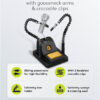 Οι 2x εύκαμπτοι βραχίονες στήριξης με clips τύπου κροκοδειλάκι επιτρέπουν την προσαρμογή της πλακέτας στο ιδανικό σημείο.