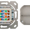 Επιτοίχια πρίζα με 2 θύρες δικτύου για σύνδεση καλωδίων με βύσμα RJ45. Είναι θωρακισμένη, ικανή για ταχύτητες 10 GBit Ethernet και ιδανική για χρήση PoE+ IEEE 802.3at.