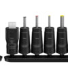 Universal φορτιστής της Goobay για την φόρτιση και τροφοδοσία ηλεκτρικών συσκευών. Διαθέτει 7 διαφορετικά βύσματα τροφοδοσίας και αντάπτορες USB, USB-C, micro USB, USB mini και screw terminal connection.