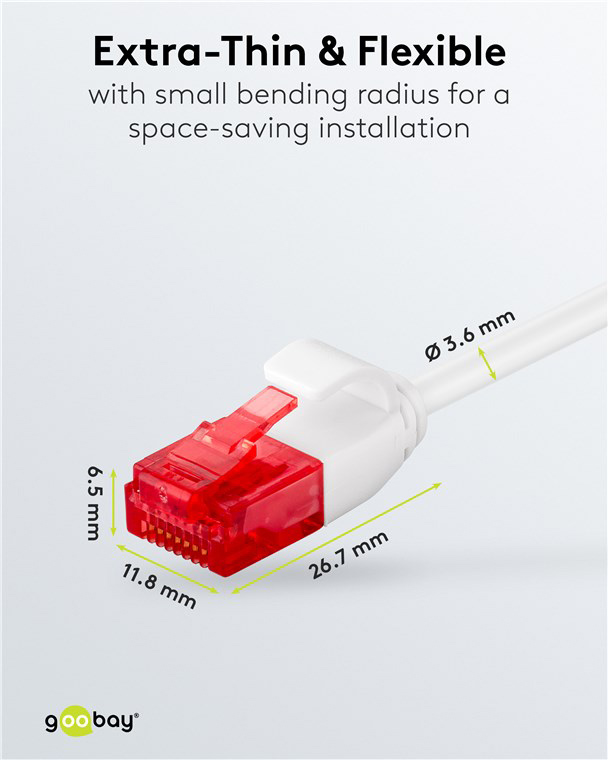 Τα καλώδια δικτύου της Goobay κατασκευάζονται από ποιοτικά υλικά, με τις υψηλότερες τεχνικές προδιαγραφές, προσφέροντας αξιόπιστη λειτουργία υψηλής απόδοσης, με αντοχή στον χρόνο.
