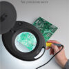 Μεγεθυντικός φακός της Goobay διαμέτρου 127mm, με 3 διόπτρες και μεγέθυνση 1.75x. Διαθέτει προστατευτικό καπάκι για την κάλυψη του φακού όταν δεν χρησιμοποιείται και φωτιστικό δακτύλιο με 60 SMD LED υψηλής απόδοσης για άνετη εργασία ακόμη και σε σκοτεινά μέρη. Ο βραχίωνας του είναι αρθρωτός και υποστηρίζει ρύθμιση κλίσης και περιστροφή, γεγονός που προσφέρει μεγαλύτερη ευελιξία κατά την διάρκεια των εργασιών σας.