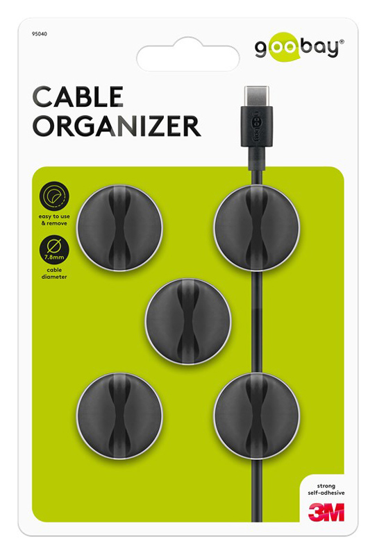 Οργανωτές καλωδίων σιλικόνης με θέση για 1 καλώδιο με μέγιστη διάμετρο 7.8mm. Η επικόλληση τους μπορεί να γίνει σε ξύλινη, πέτρινη, γυάλινη, πλαστική και μεταλλική επιφάνεια με αυτοκόλλητο 3M, το οποίο δεν αφήνει υπολείμματα όταν αφαιρεθεί. Είναι κατάλληλοι για την εύκολη τακτοποίηση καλωδίων όπως USB ή τροφοδοσίας.