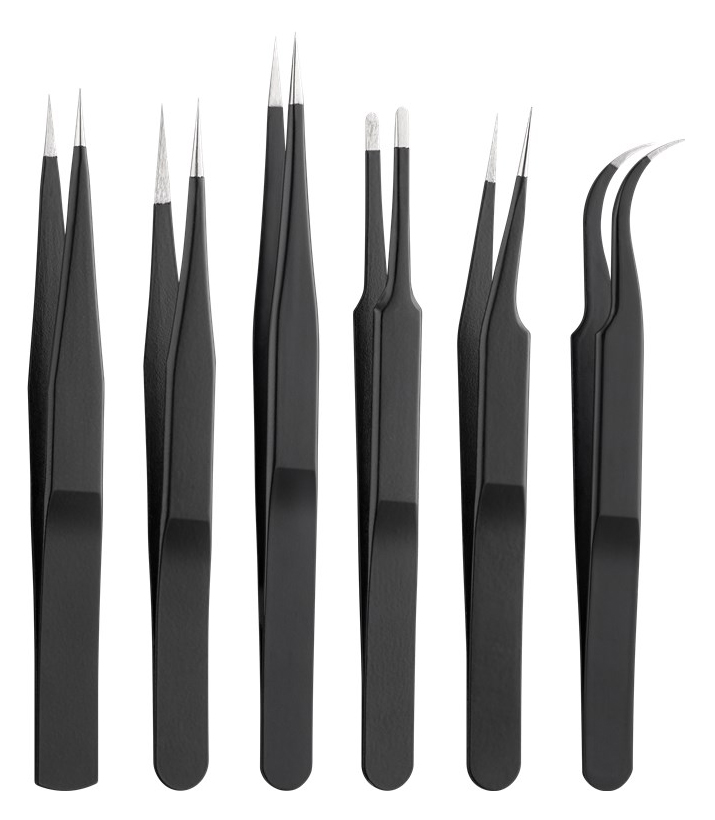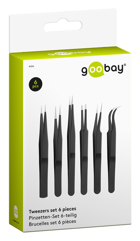 GOOBAY σετ τσιμπίδες 41256, ανοξείδωτες, αντιστατικές, μαύρο, 6τμχ
