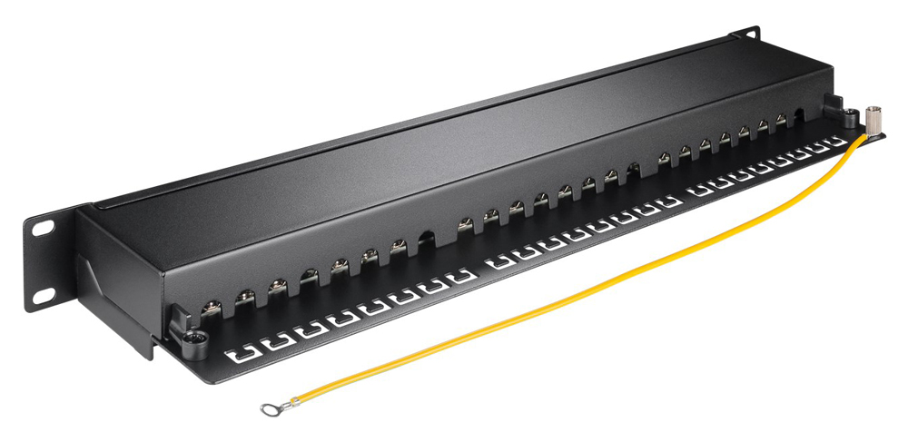 Patch panel της Goobay για τοποθέτηση σε καμπίνα δικτύου 19". Μπορούν να εγκατασταθούν έως και 24 καλώδια δικτύου.
