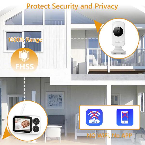Ασύρματη ενδοεπικοινωνία μωρού της HelloBaby που αποτελείται από κάμερα και οθόνη 3.2".