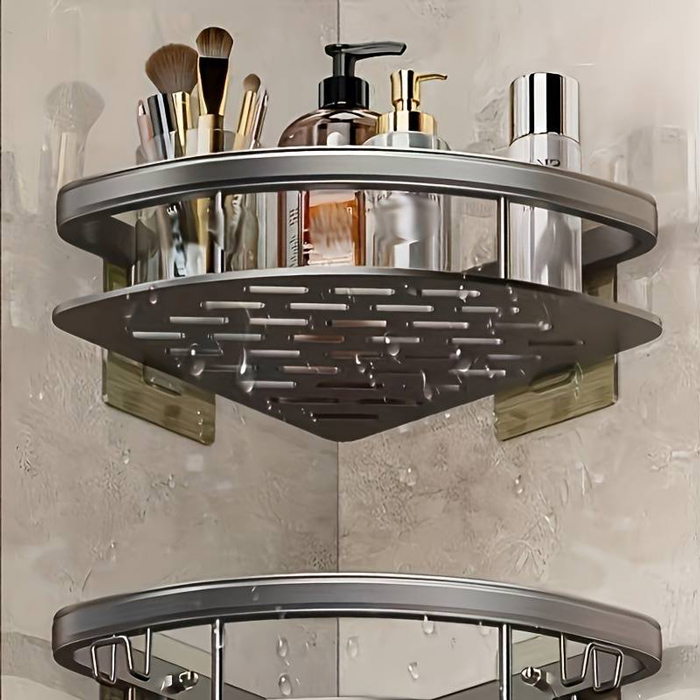Γωνιακό ράφι τοίχου HOME USE, ιδανικό για την αποθήκευση μικροαντικειμένων στο μπάνιο ή την κουζίνα.