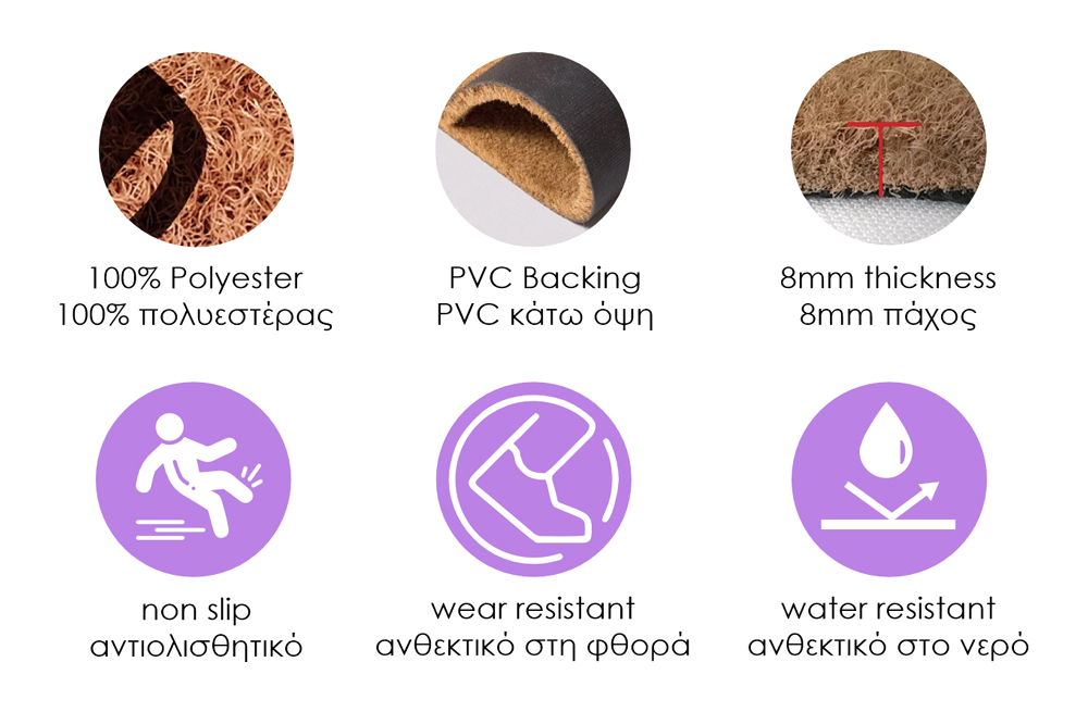 Πατάκι HOME USE για είσοδο πόρτας, με αντιολισθητική επιφάνεια, για επιπλέον σταθερότητα. Είναι κατασκευασμένο από πολυεστέρα με PVC επιφάνεια στο κάτω μέρος, που προσφέρουν εξαιρετική αντοχή στη φθορά και το νερό.