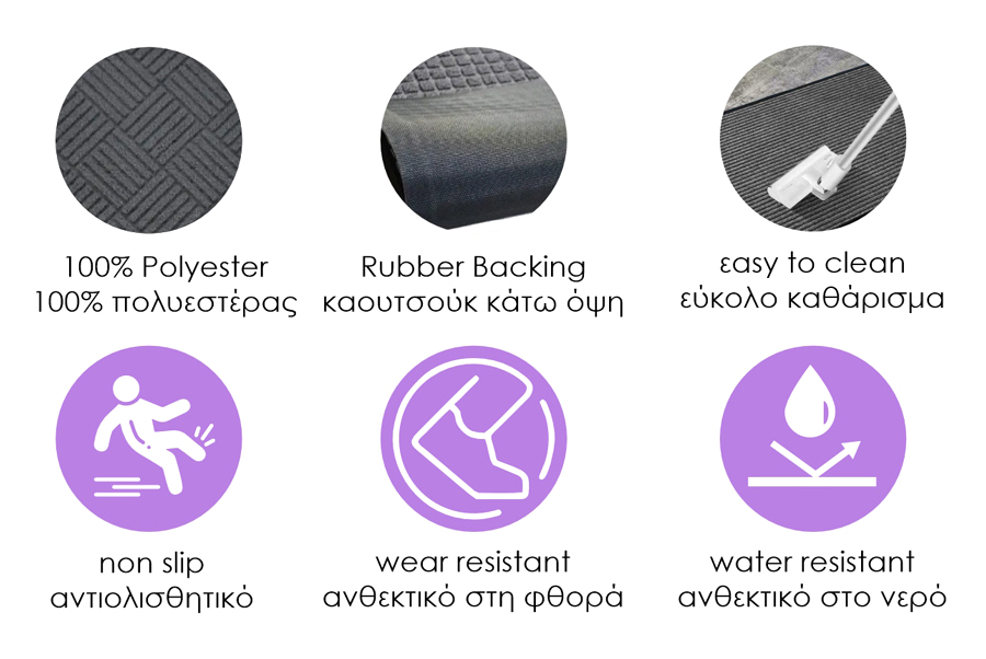Πατάκι HOME USE για είσοδο πόρτας, με αντιολισθητική επιφάνεια, για επιπλέον σταθερότητα. Είναι κατασκευασμένο από πολυεστέρα με καουτσούκ επιφάνεια στο κάτω μέρος, που προσφέρουν εξαιρετική αντοχή στη φθορά και το νερό.