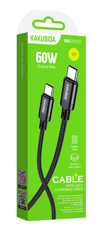 KAKUSIGA καλώδιο USB-C σε USB-C KSC-970, 60W, 480Mbps, 1m, μαύρο