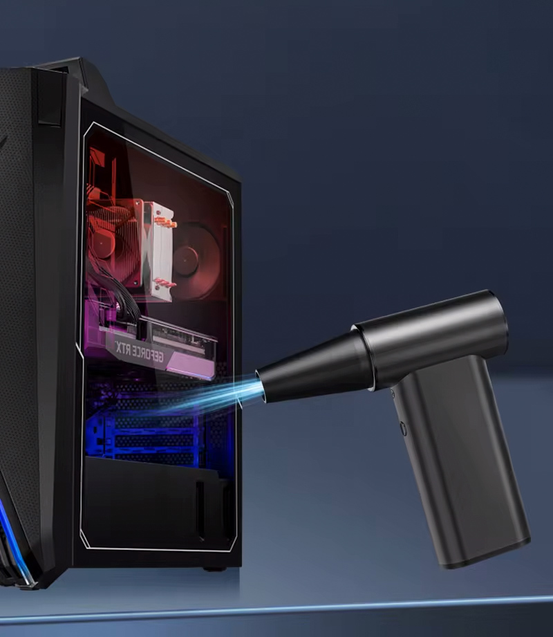 Ηλεκτρικό air duster της Kinzir, κατάλληλο για την απομάκρυνση της σκόνης από αξεσουάρ και οικιακά αντικείμενα όπως πληκτρολόγια, PC cases, κλιματιστικά, ηλεκτρονικές συσκευές κ.α.