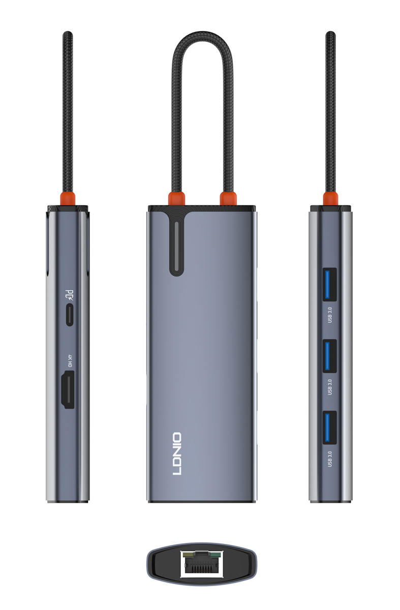 LDNIO docking station DS-16H, 6 θυρών, USB-C σύνδεση, 4K, 100W PD, γκρι