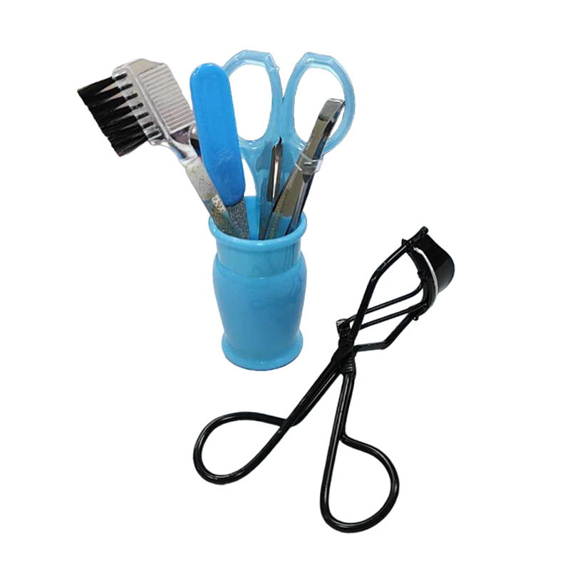Το σετ περιλαμβάνει: 1 ψαλιδάκι, pusher, 1 εργαλείο για πετσάκια, 1 τσιμπιδάκι φρυδιών, 1 λίμα νυχιών, 1 ψαλιδάκι για βλεφαρίδες & 1 δοχείο αποθήκευσης.