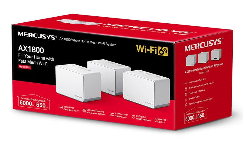 MERCUSYS Mesh Wi-Fi 6 System Halo H70X, 1.8Gbps Dual Band, 3τμχ, V. 1.20