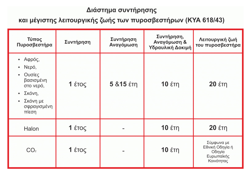 Διάστημα συντήρησης και μέγιστης ζωής των πυροσβεστήρων (ΚΥΑ 618/43)