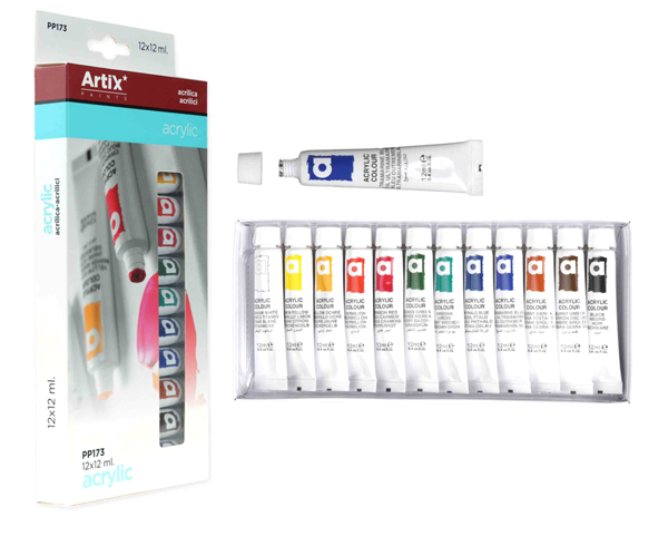 MP ακρυλικά χρώματα ακουαρέλας PP173, 12 χρώματα, 12x 12ml