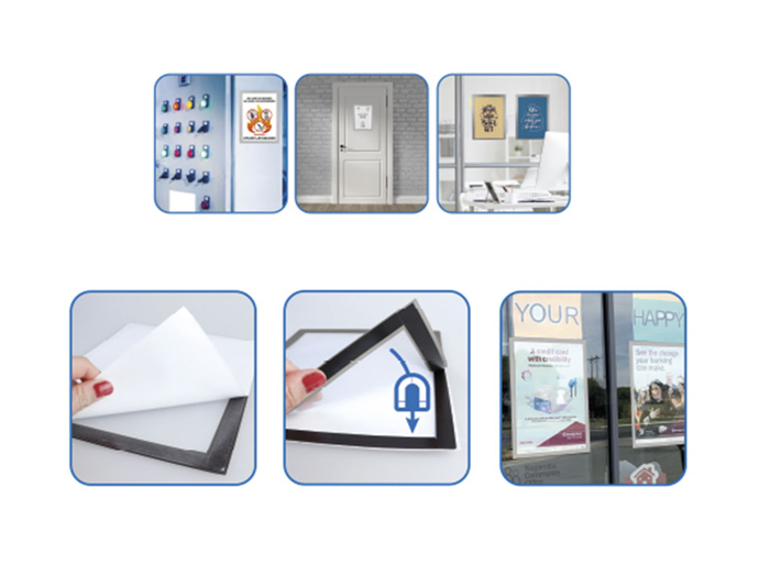 Αυτοκόλλητη θήκη A4, ιδανική για την τοποθέτηση ανακοινώσεων στο εσωτερικό της. Διαθέτει μαγνητικό περιμετρικό πλαίσιο για το εύκολο άνοιγμα και κλείσιμο της θήκης μέσω μαγνητικής δύναμης.
