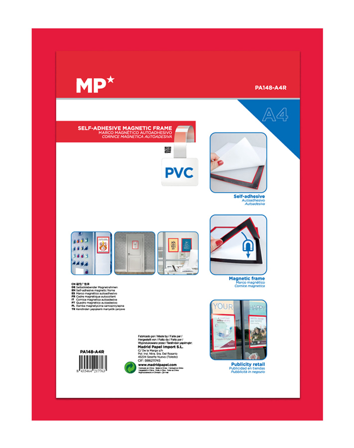 MP αυτοκόλλητη θήκη ανακοινώσεων A4 PA148 με μαγνητικό πλαίσιο, κόκκινη