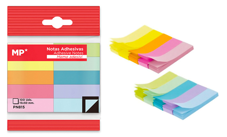 MP αυτοκόλλητοι σελιδοδείκτες PN815, 15x50mm, 1000τμχ, χρωματιστοί