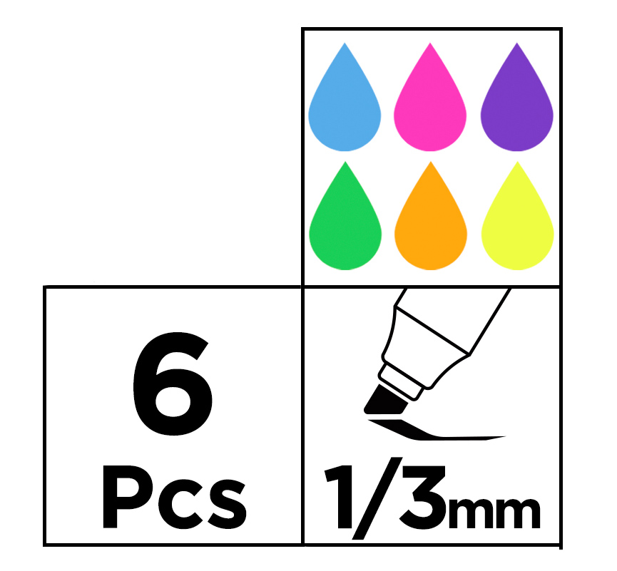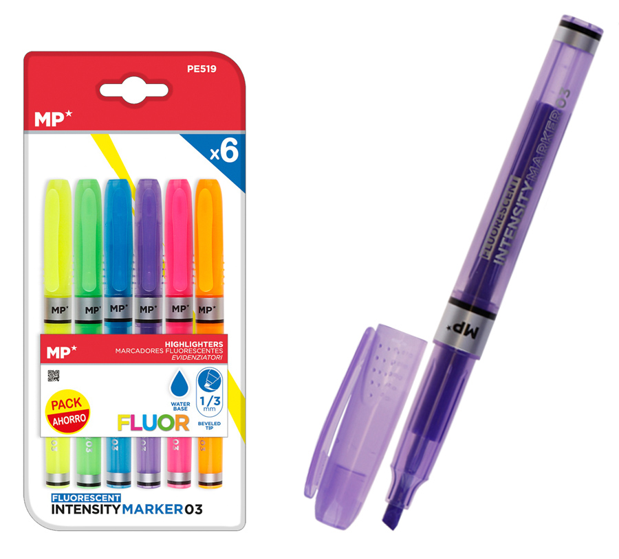 MP μαρκαδόροι υπογράμμισης PE519, διάφορα χρώματα, 1/3mm, 6τμχ