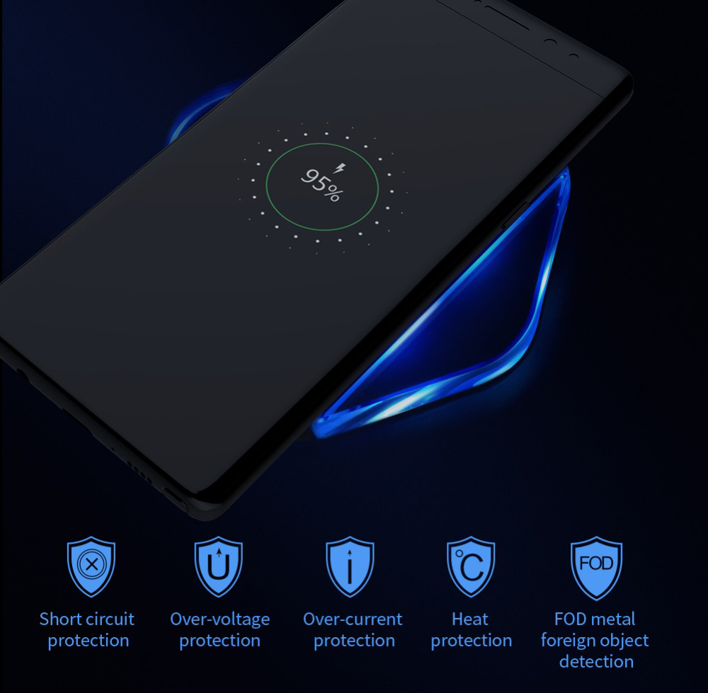 Υποστηρίζει γρήγορη ασύρματη φόρτιση με απόδοση έως 10W ενώ για την λειτουργία του απαιτείται η παροχή ρεύματος από φορτιστή (δεν συμπεριλαμβάνεται) μέσω θύρας micro USB (συμπεριλαμβάνεται καλώδιο).