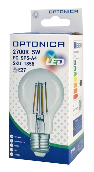 OPTONICA LED λάμπα A60 1856, Filament, 5W, 2700K, 600lm, E27