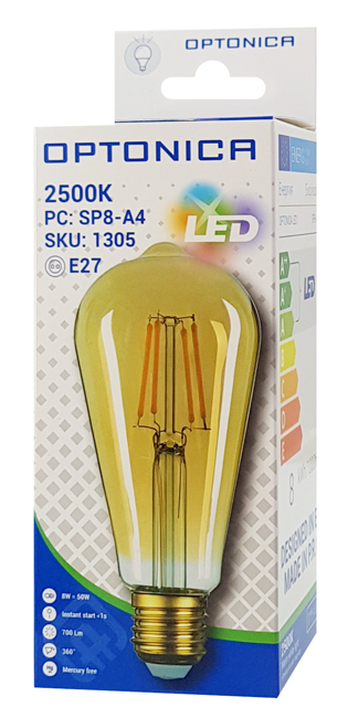 OPTONICA LED λάμπα ST64 1305, 8W, 2500K, E27, 700lm