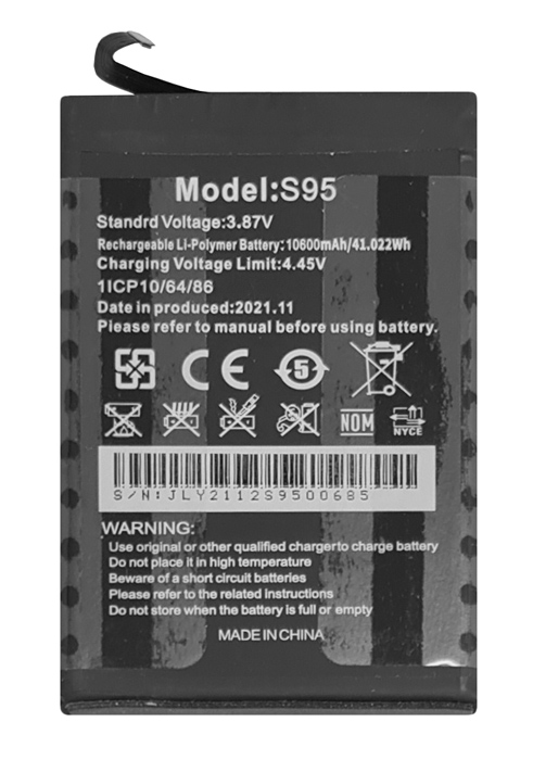 Rechargeable Li-Polymer Battery: 10600mAh / 41.022Wh