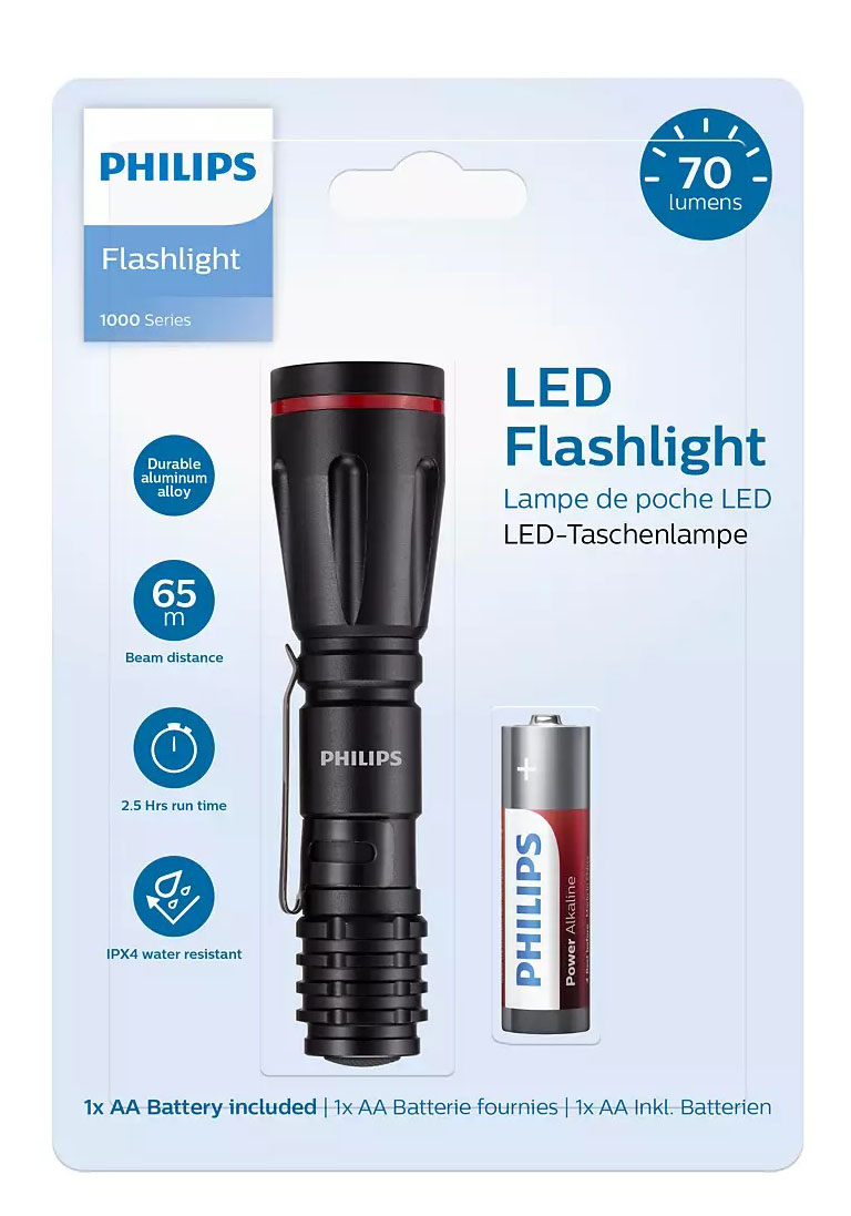 PHILIPS φορητός φακός LED SFL1000P-10, 1000 series, 70lm, μαύρος