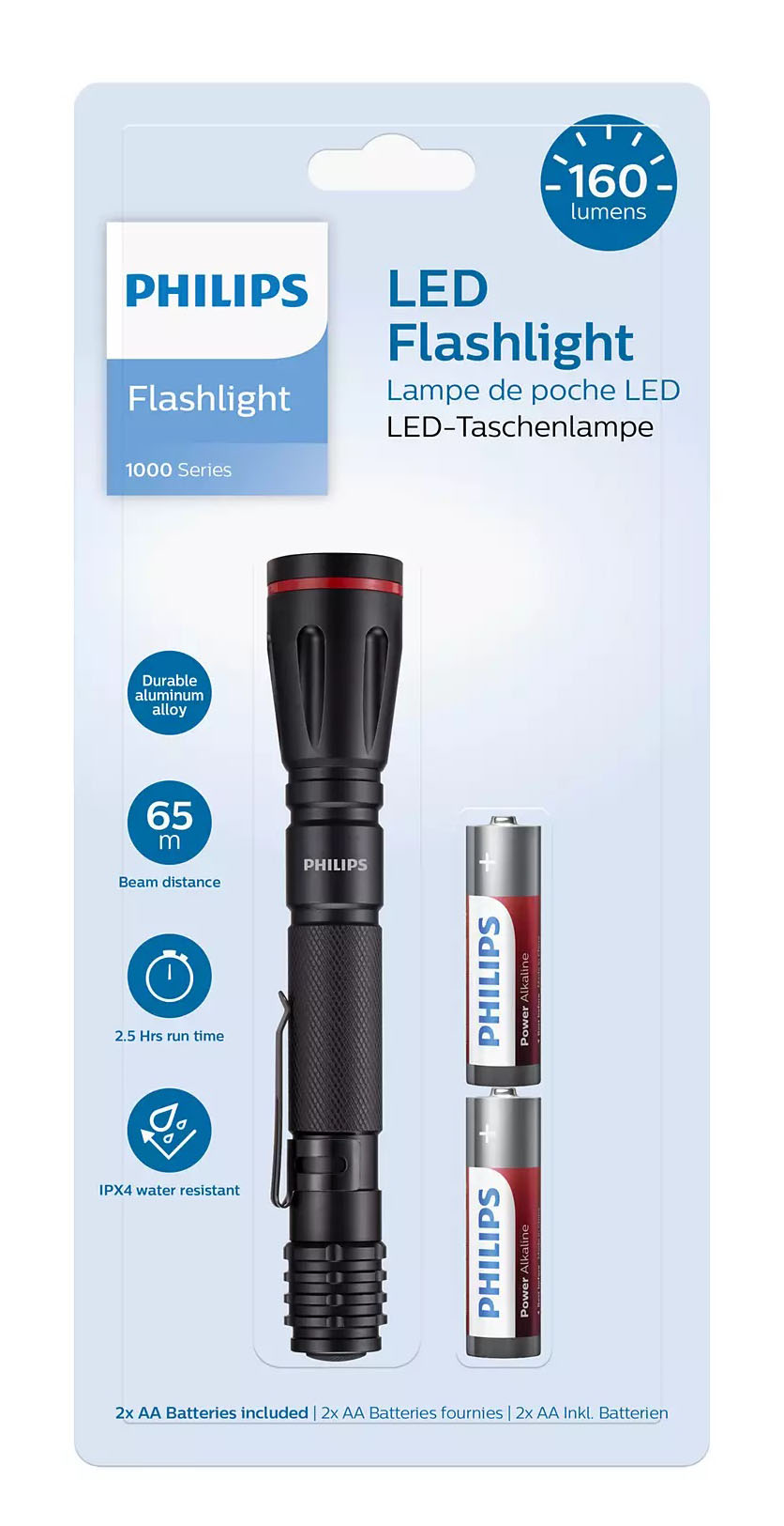 PHILIPS φορητός φακός LED SFL1001P-10, 1000 series, 160lm, μαύρος