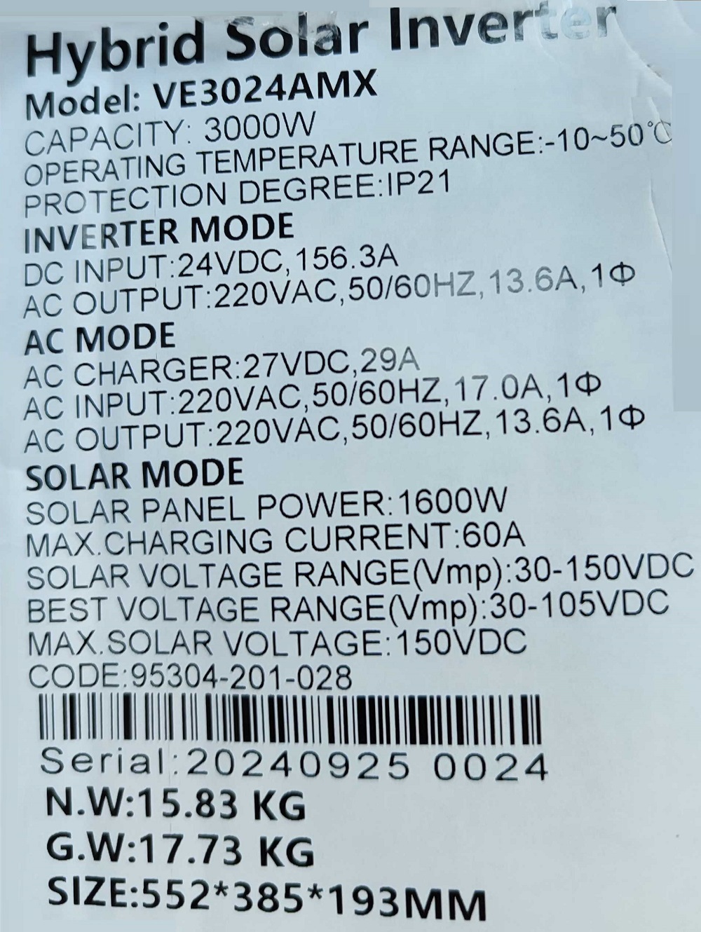 Το Power Inverter VE3024 της εταιρίας LC-Star Solar με έξοδο καθαρού ημιτόνου μετατρέπει συνεχές ρεύμα(DC) 24V σε εναλλασσόμενο(AC) και επιτρέπει την τροφοδοσία ηλεκτρικών και ηλεκτρονικών συσκευών από μπαταρίες και ανανεώσιμες πηγές ενέργειας όπως φωτοβολταϊκά συστήματα και ανεμογεννήτριες.