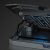 Εξοπλίζεται με LCD οθόνη και πλήκτρα για την ρύθμιση ταχύτητας των ανεμιστήρων και διαθέτει stand για το κινητό σας τηλέφωνο.