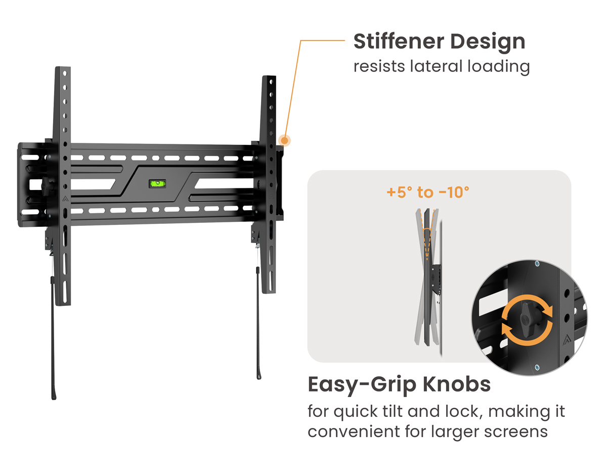 POWERTECH επιτοίχια βάση τηλεόρασης PT-1370, 37-86", έως 75kg, ρυθμιζόμενη κλίση
