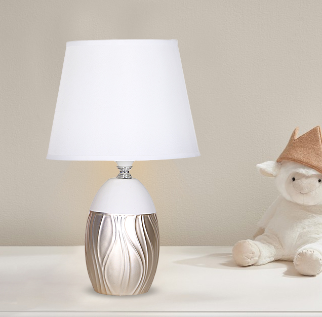POWERTECH επιτραπέζιο φωτιστικό HLL-0137, E27 κεραμική βάση, λευκό/χρυσό