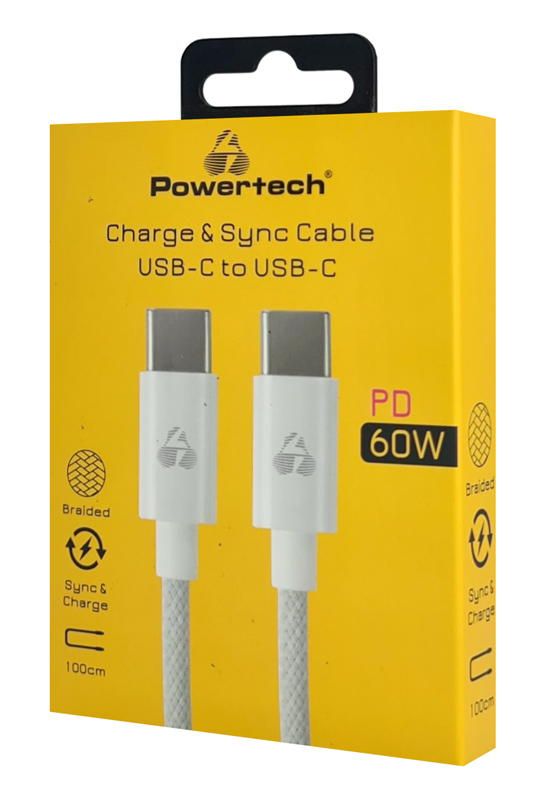 POWERTECH καλώδιο USB-C PTR-0183, 60W, 480Mbps, 1m, λευκό